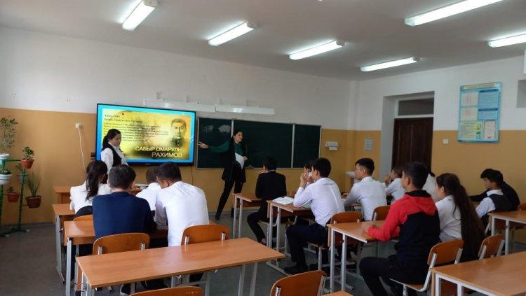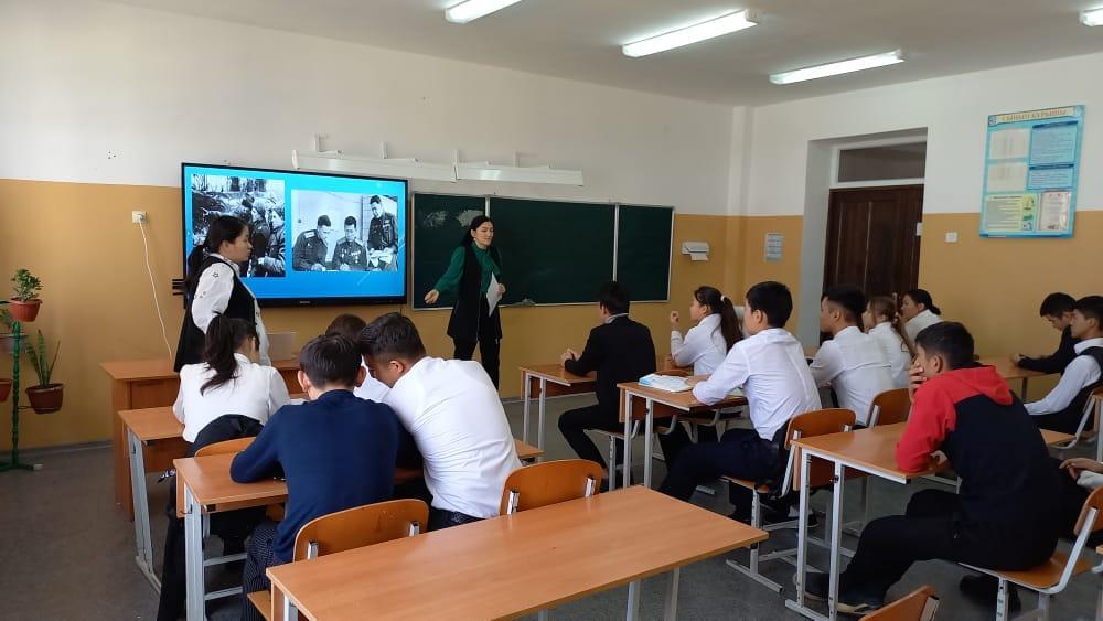 Шымкент қаласы білім басқармасына қарасты №128 жалпы білім беретін мектепте 10 сынып оқушыларымен тарих пәнінің мұғалімдері Смаилова Индира мен Мүсірәлі Жанел " Қазақ халқының даңқты ұлдарының бірі, генерал- майор Сабыр Рахымов" тақырыбында әдеби тарихи сағат өтті.
